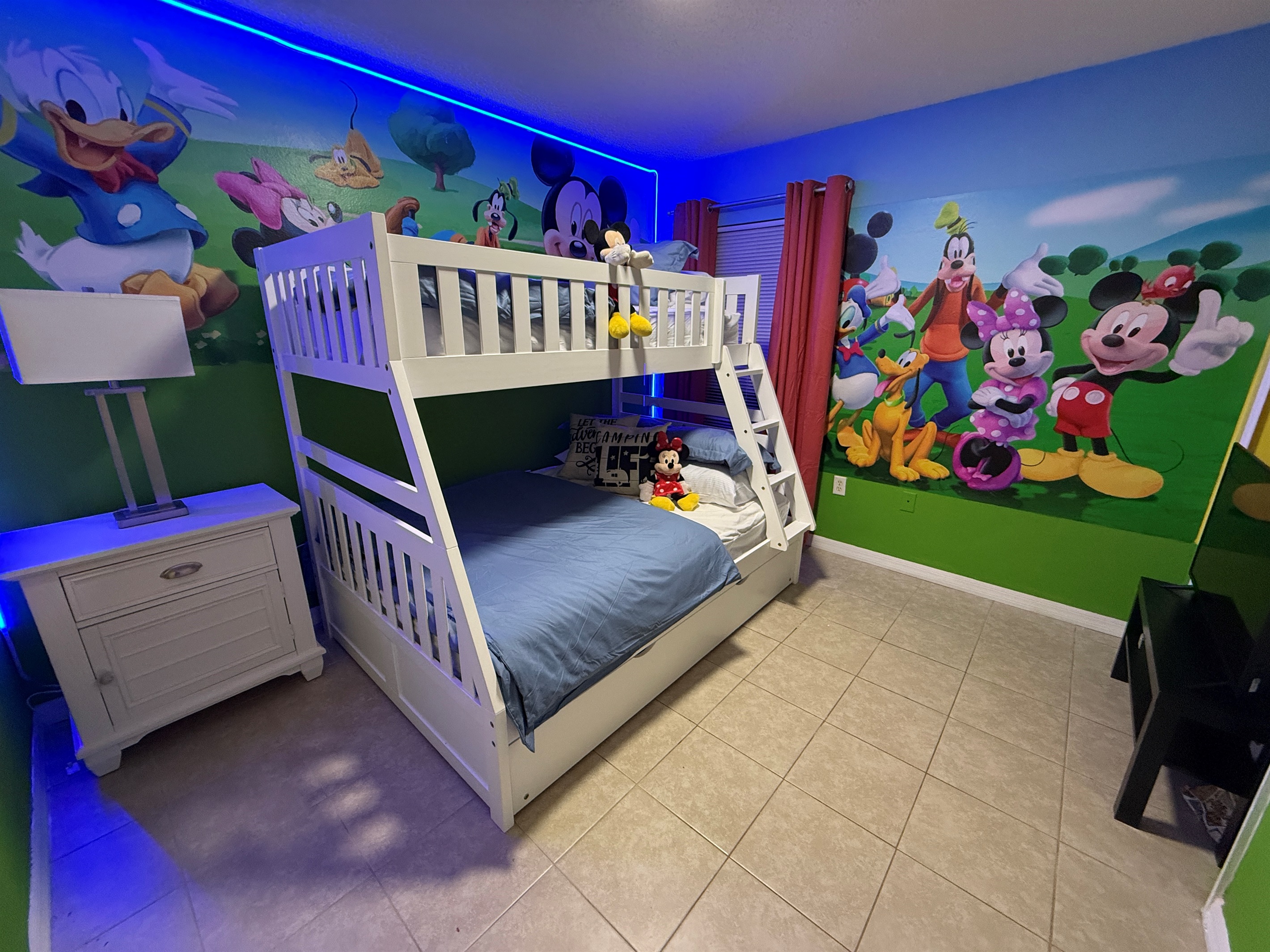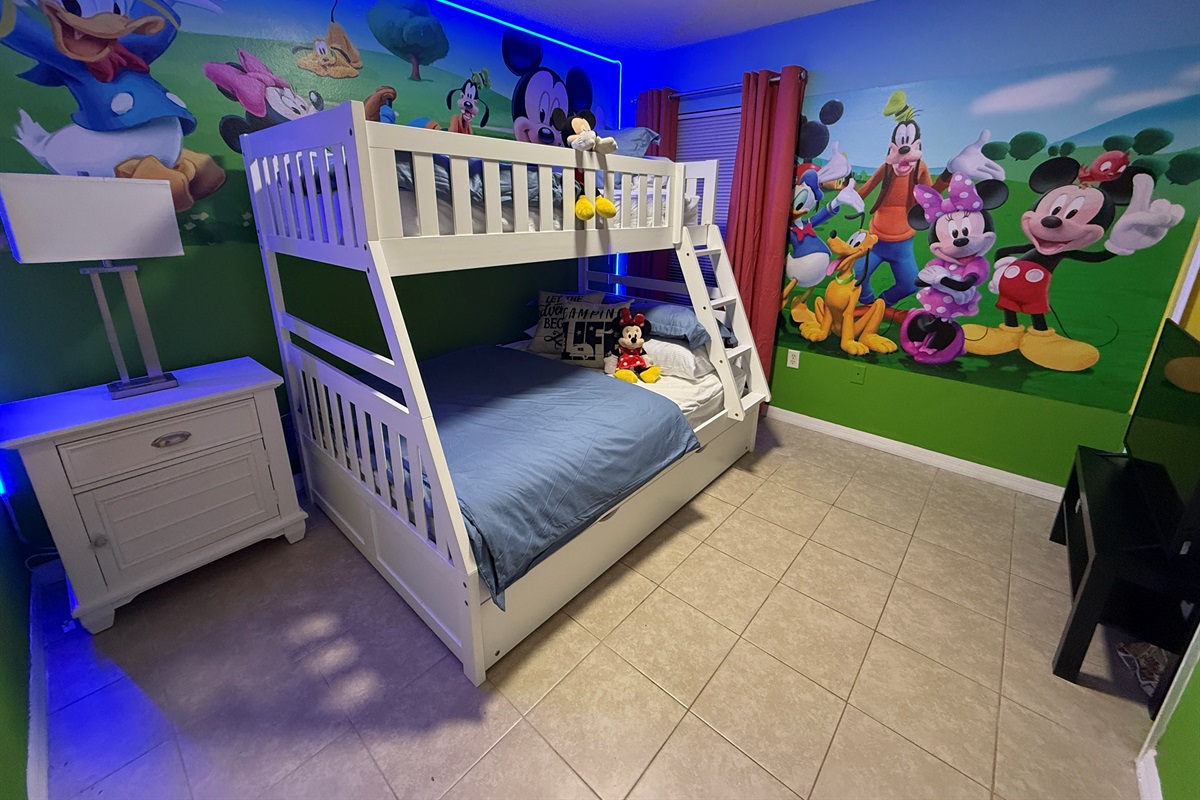 • Bedroom 4: Twin / full bunk bed with trundle (Mickey theme)